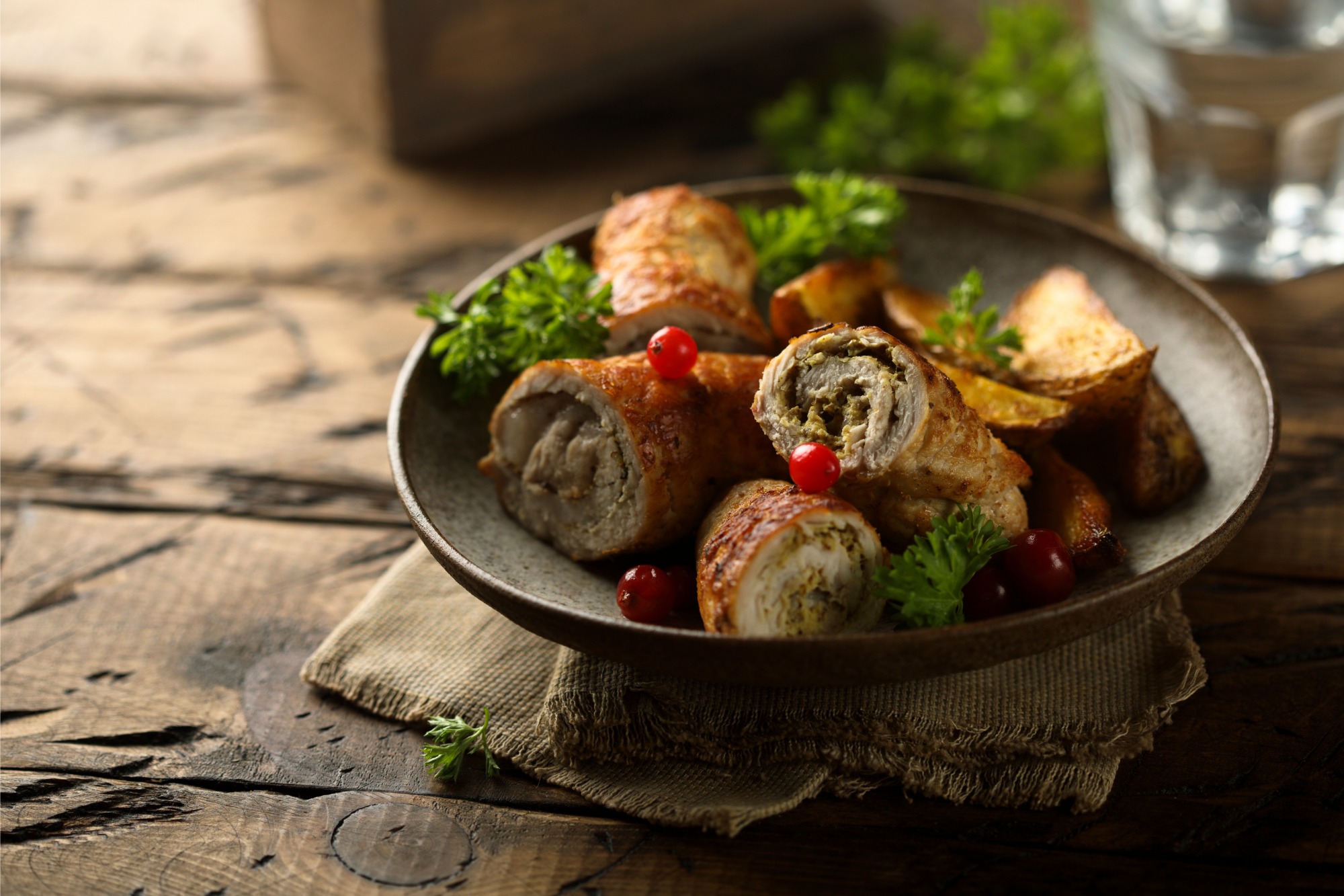 Menu 1: Kuracia roláda plnená špenátom a syrom, smotanové zemiaky, šalát